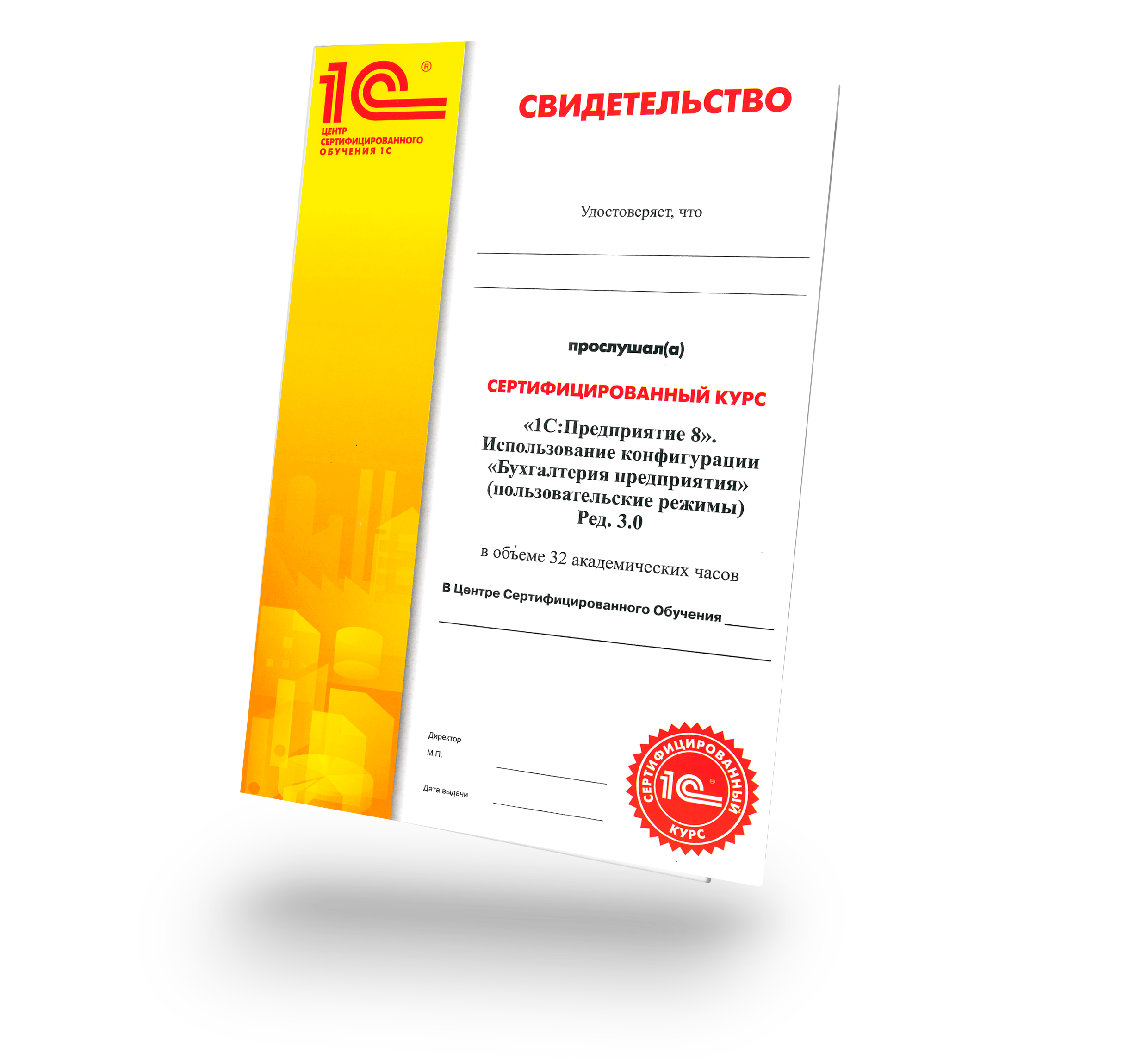 Курс ведёт сертифицированный преподаватель 1С